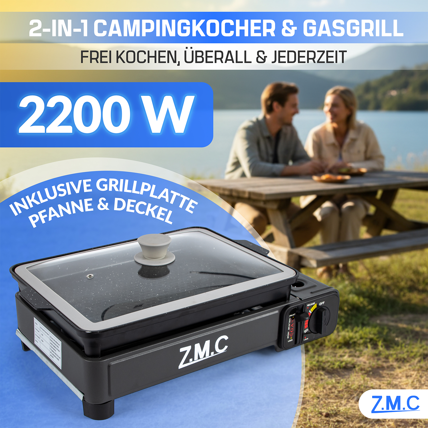 2-in-1 Gaskocher und Grill in einem kompakten Gerät, ideal für Camping, Balkon, Garten oder Festival, perfekt für flexible Outdoor-Küche und spontane Grillabende mit Familie und Freunden, vielseitig einsetzbar für Kochen und Grillen,